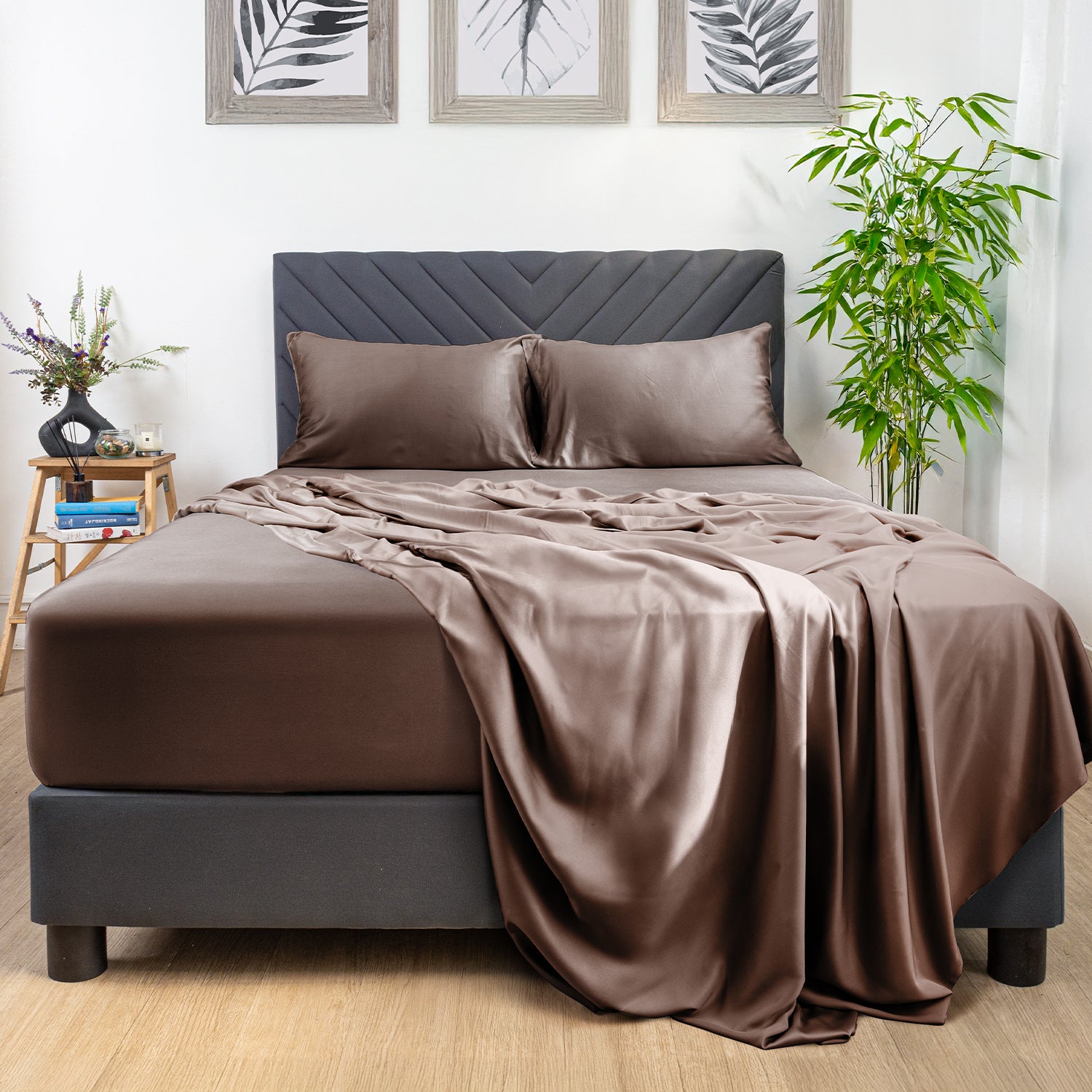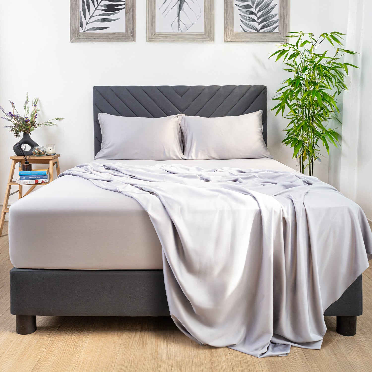 Wrap yourself in soft, sustainable comfort with our Eco Deluxe Bed Linens. Made from 100% bamboo with a 300-thread count, these linens are smooth to the touch and gentle on the skin. The tightly woven bamboo fabric helps improve sleep quality while staying cool and breathable throughout the night. Thoughtfully designed with both comfort and sustainability in mind, each set also comes in eco-conscious packaging made from self-fabric that matches the actual color of the linens, perfect for storage or gifting.